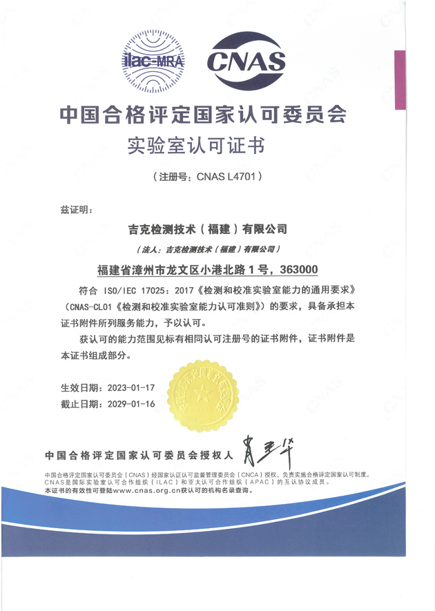 吉克檢測(cè)技術(shù)(福建)有限公司,位于福建省漳州市龍文區(qū)小港北路1號(hào),于2019年8月注冊(cè)成立,是一家獨(dú)立的第三方檢測(cè)公司。公司已經(jīng)通過檢驗(yàn)檢測(cè)機(jī)構(gòu)計(jì)量認(rèn)證(CMA)、農(nóng)產(chǎn)品質(zhì)量安全檢測(cè)機(jī)構(gòu)資質(zhì)認(rèn)證(CATL),獲得中國合格評(píng)定國家認(rèn)可委員會(huì)(CNAS)認(rèn)可。公司本著“嚴(yán)謹(jǐn)、規(guī)范、高效、協(xié)作”的原則和對(duì)客戶及社會(huì)高度負(fù)責(zé)的精神,充分利用本公司優(yōu)質(zhì)的檢測(cè)環(huán)境、先進(jìn)的檢測(cè)設(shè)備和專業(yè)的技術(shù)人員,第一時(shí)間為客戶提供科學(xué)、公正、準(zhǔn)確的檢驗(yàn)檢測(cè)報(bào)告。 公司實(shí)驗(yàn)室面積1100多平方米,儀器設(shè)備兩百多臺(tái)(套),固定資產(chǎn)一千多萬元,在職員工31人,技術(shù)人員中的中高級(jí)職稱及同等能力人數(shù)占60%以上。我們的服...